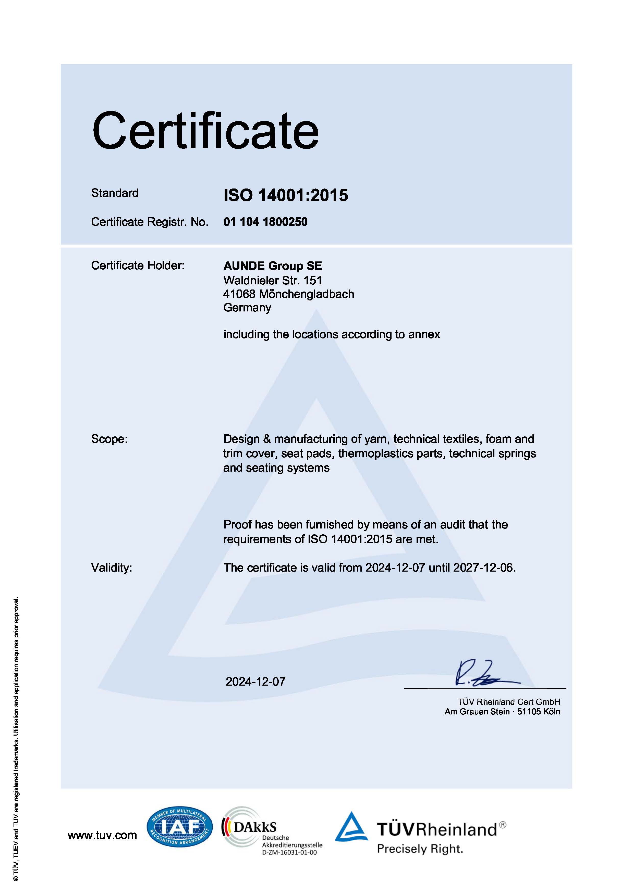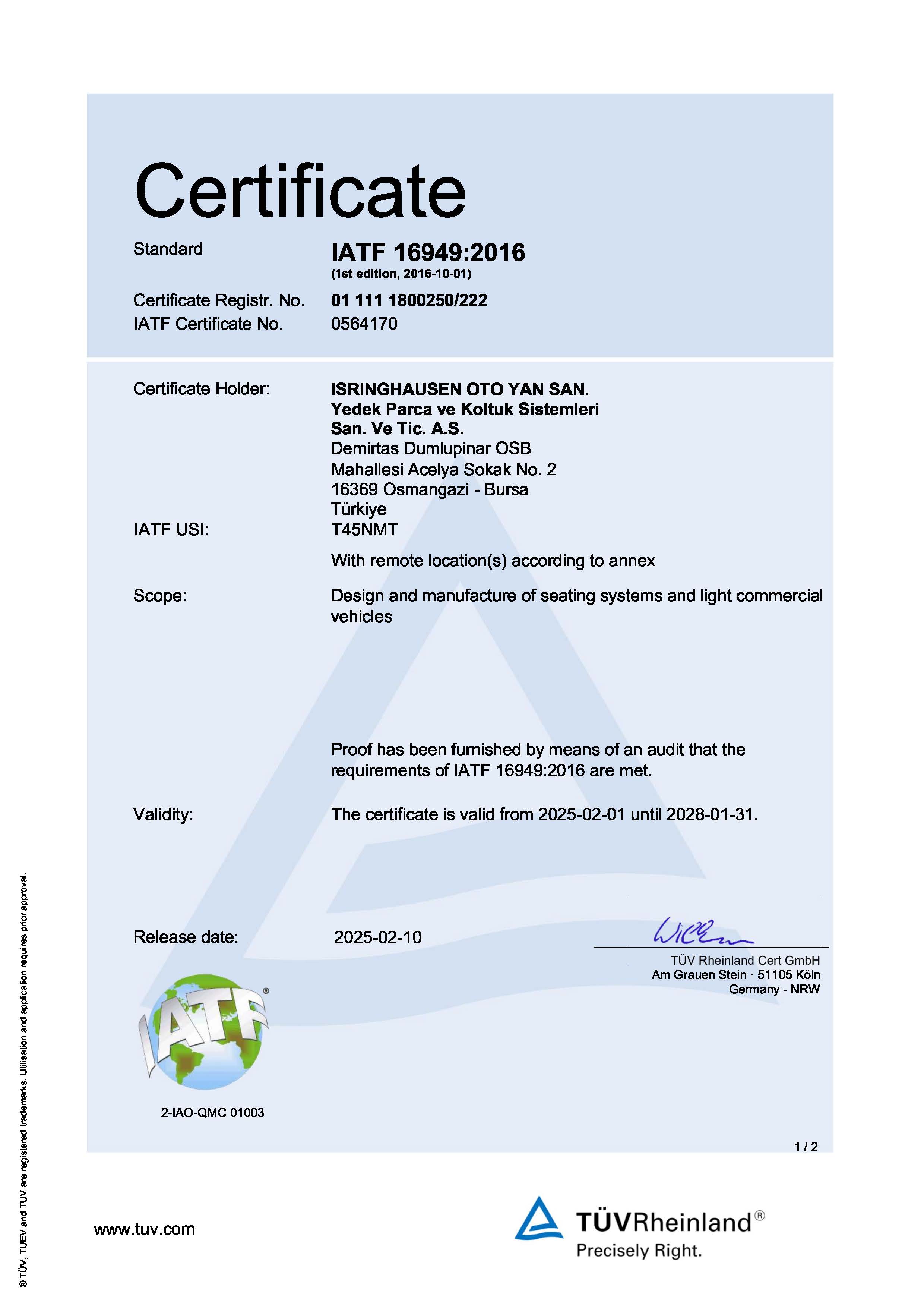 AUNDE grup bünyesinde bulunan ISRINGHAUSEN KOLTUK SİSTEMLERİ AŞ. , ticari faaliyetine